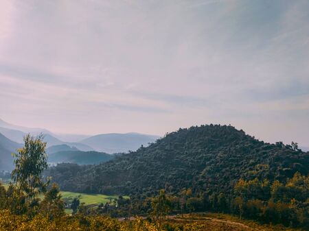 Hill with some trees, the photo has a vintage effect