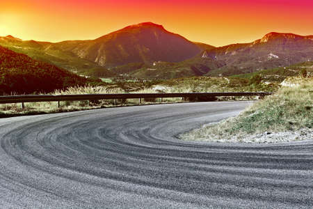 Winding Paved Road in the French Alps at Sunset, Vintage Style Toned Picture
