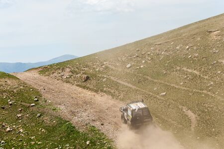 Editorial. 15.06 2014 Rally organized in the mountains. Assy plateau. Tien Shan. Kazakhstan. Country road