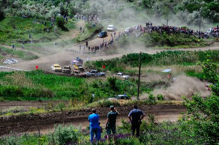 Alexandria, Ukraine - June 10, 2017: Race of the old wrecked cars. Rally on the open air with dust