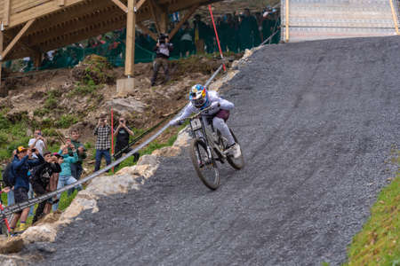 Lourdes, France : 2022 March 26 : SEAGRAVE Tahnee FRA at the Mountain Bike World Cup Lourdes 2022 in DOWNHILL QUALIFYING ROUND.