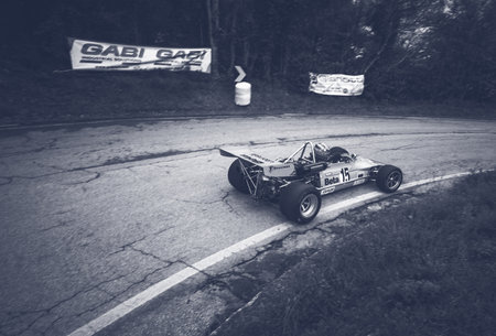 PESARO, ITALY - OCT 10 - 2021: vintage CAR MARCH F2 IN RACE IN PESARO SAN BARTOLO