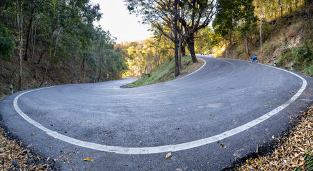 Beatiful highway with 762 sharp and steep hairpin bends,set amongst rain forest, leading up into the mountains of Northern Thailand.