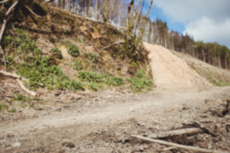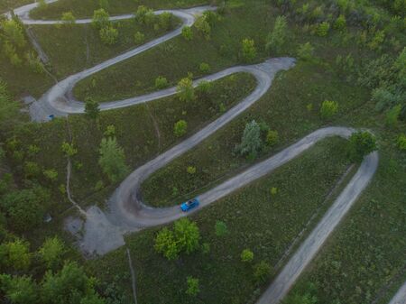 Aerial view Simulation of the mountain road for vehicle testing.Test road in the forest for testing and fine-tuning cars.