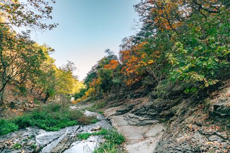 Colorful autumn forest of National Botanical Garden of Georgia in Tbilisi, Georgia.