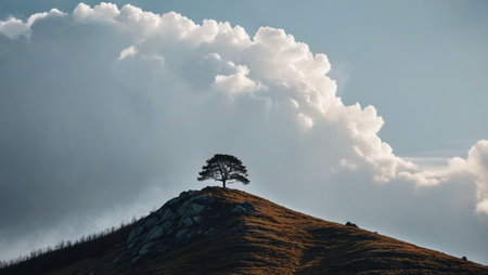 A woman in a gray hoodie stands on a misty cliffside, gazing out at the vast expanse of the ocean The serene moment captures the tranquility of the moment, as she enjoys the refreshing sea breeze and contemplates the beauty of nature The soft light and misty atmosphere create a sense of peace and wonder AI Generative