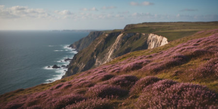 AI Generated. Heather Moors with Sloping Coastal Cliffs