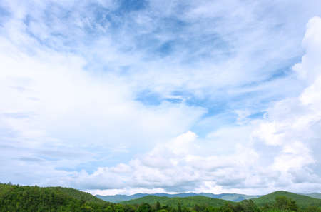 Blue sky in white clouds with mountain