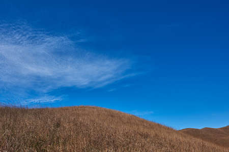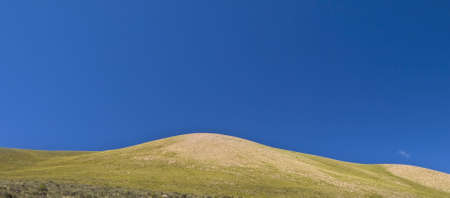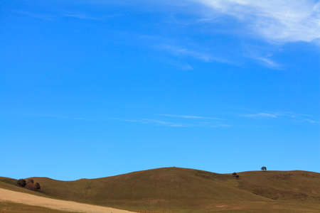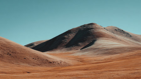 Explore a tranquil landscape featuring rolling brown hills beneath a clear blue sky. This serene environment captures the essence of nature's beauty and simplicity.