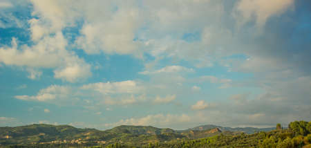 fluffy clouds on the blue sky in afternoon. beautiful nature background. panoramic view