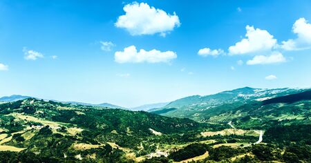 Panoramic landscape of green hills in the Molise countryside in southern Italy. Piserva naturale