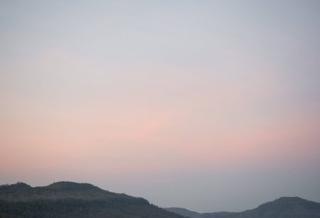 A captivating view of a mountainous landscape at sunset, showcasing soft pastel colors and gentle gradients in the sky, perfect for invoking feelings of peace and tranquility.