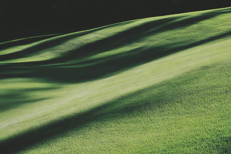 Detailed texture of light green fairway with smooth undulations against a dark backdrop