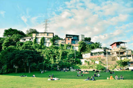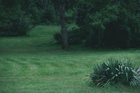 green grass meadow in botanical graden