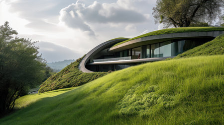Luxurious modern home seamlessly integrated into natural landscape