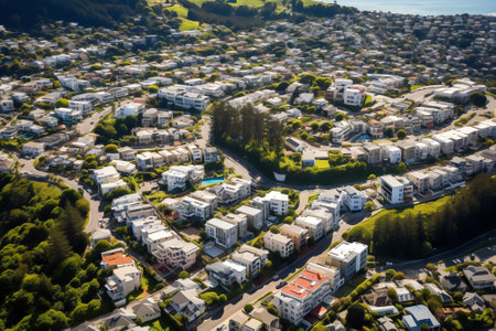 Wellington, New Zealand - April 11, 2020: Panoramic view of houses on Brooklyn suburb in Wellington, New Zealand