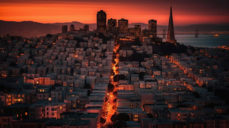 Panoramic view of the San Francisco city from the hill Twin Peaks at night time.