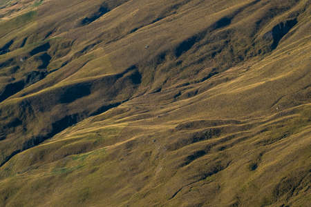 Beautiful texture of the yellow and green grassland. View from high mountain.