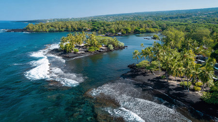 Aerial view of beach coastline in Hawaii, usa