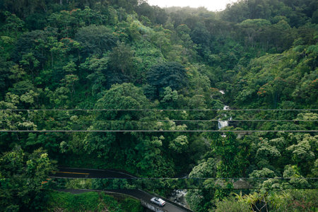 Aerial view of the road in the tropical forest. Beautiful landscape.