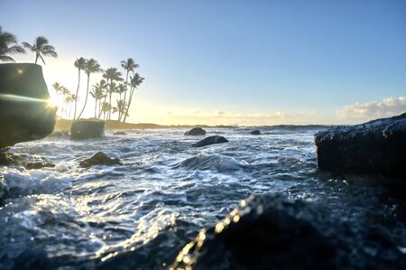 The sunrise over the beach in Kauai, Hawaii