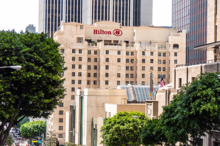 Hilton Hotel building in Downtown Los Angeles - CALIFORNIA, UNITED STATES - MARCH 18, 2019