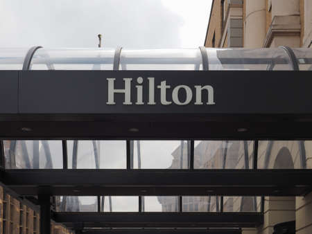YORK, UK - AUGUST 26TH 2015: The sign for the Hilton Hotel in York, on 26th August 2015.
