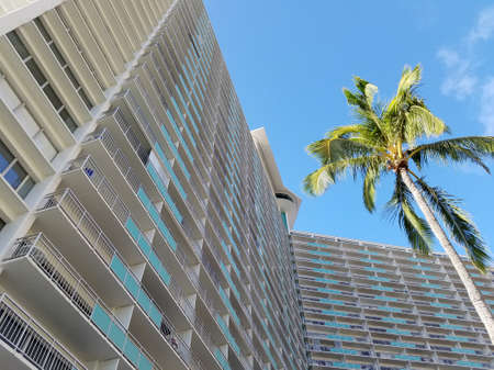 Waikiki - May 7, 2017: The Ilikai Hotel & Luxury Suites is a landmark oceanfront high rise hotel and condominium at the western end of Waikiki in Honolulu, Hawai'i. When it opened in 1964, the Ilikai was the first luxury high rise hotel in Hawai'i.[1]