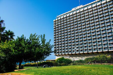 Tel Aviv Israel February 20, 2020 View of the facade of a modern buildings in the streets of Tel Aviv in the afternoon