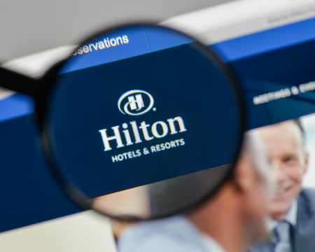 Milan, Italy - August 10, 2017: Hilton logo on the website homepage.