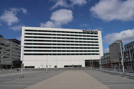Empty parking lot at the Sheraton Hotel at Amsterdam Schiphol Airport due to canceled flights by the corona virus crisis