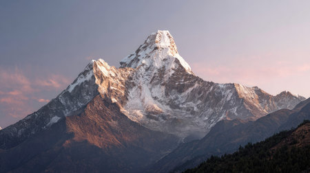 Generative AI : On the picture from left to right Annapurna III 7555 m Gandharwa Chuli 6248 m and unclimbed mountain Machhapuchhre 6997 m or Fish Tail Nepal Himalayas Annapurna Con