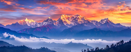 panorama beautiful sunset over Himalaya mountains 2