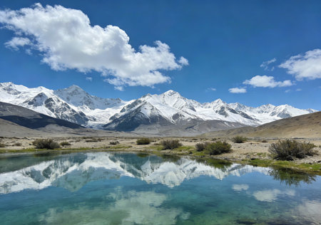 Natural landscape of snow-capped mountains and clouds