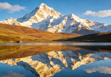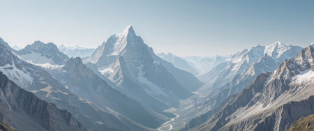 An AI generated illustration of A mountainous landscape with a snow-capped peak