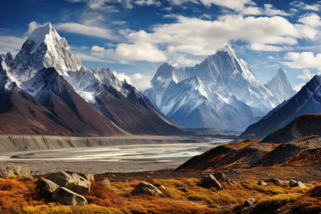 AI Generated. harmonious interplay between towering peaks and tranquil valleys epitomizing exquisite fusion of untamed grandeur and peaceful tranquility that defines these breathtaking settings
