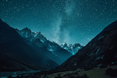 A starry night in mountainous, A starry night in a remote mountainous region Ai generated