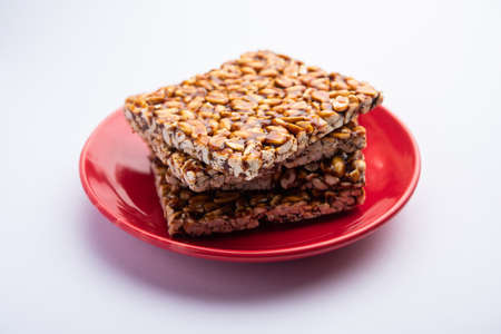 Peanut Jaggery chikki or bar using groundnut or shengdana with gur