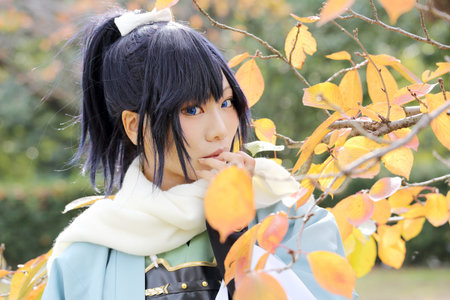 Marugame, Kagawa, Japan-November 20, 2016: Young japanese girl dressed in cosplay costume at Mamugame-Jou Park. Photo taken in Marugame Cosplay Convention