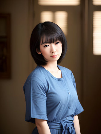 portrait of beautiful asian woman in casual outfit at night, generative AI
