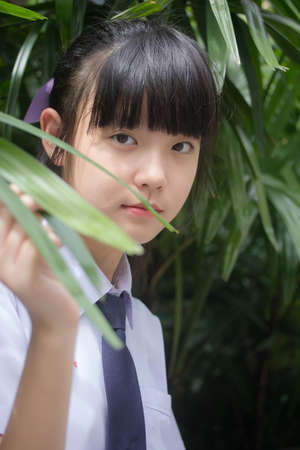 thai Junior high school student uniform teen beautiful girl happy and relax