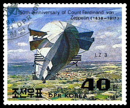 STAVROPOL, RUSSIA - JULY 19, 2016: a stamp printed in DPR Korea shows Airship LZ-3, Ferdinand Von Zeppelin, series, cirka 1988