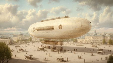 Conceptual design of future airships, zeppelins soaring through the air. Ai generated.