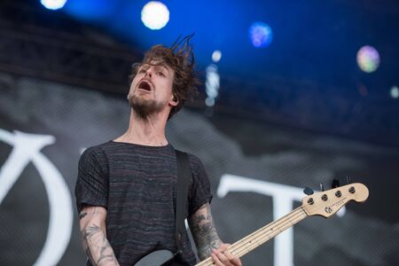 BONTIDA, ROMANIA - JULY 20, 2019: English metalcore band While She Sleeps performing a live rock concert at Electric Castle Festival