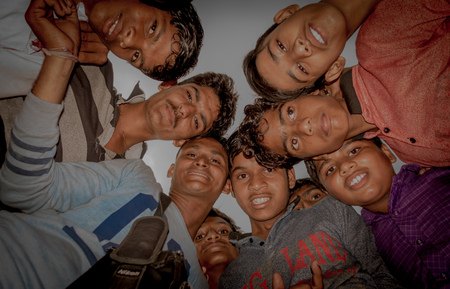 Jaipur, India - September 20, 2007: Close up of children playing in the street in Jaipur city in India, nadir effect picture