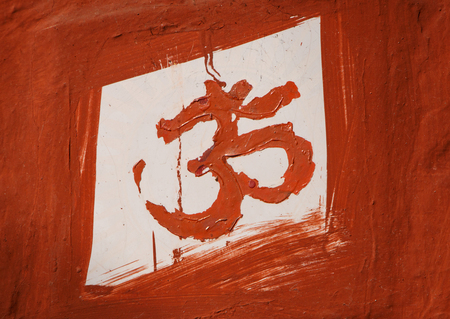 Om sign painted on wall of Hindu temple in India