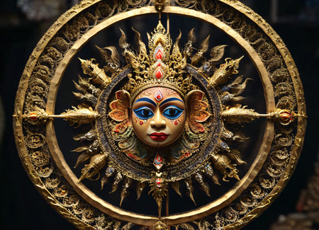 close-up of colorful statue of hindu deity in temple, created with generative ai