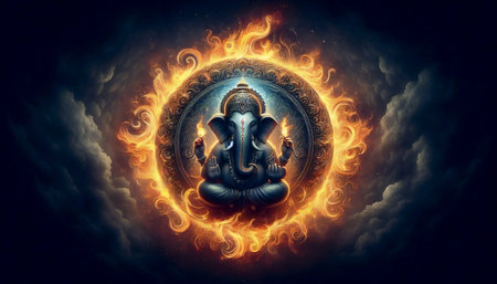 A Lord Ganesha within a circle of fire, Ai generated image
