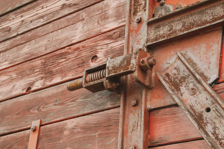 Close up of grunge vintage wooden texture with rusty metal lock
