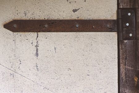 Old hinges on the wooden door